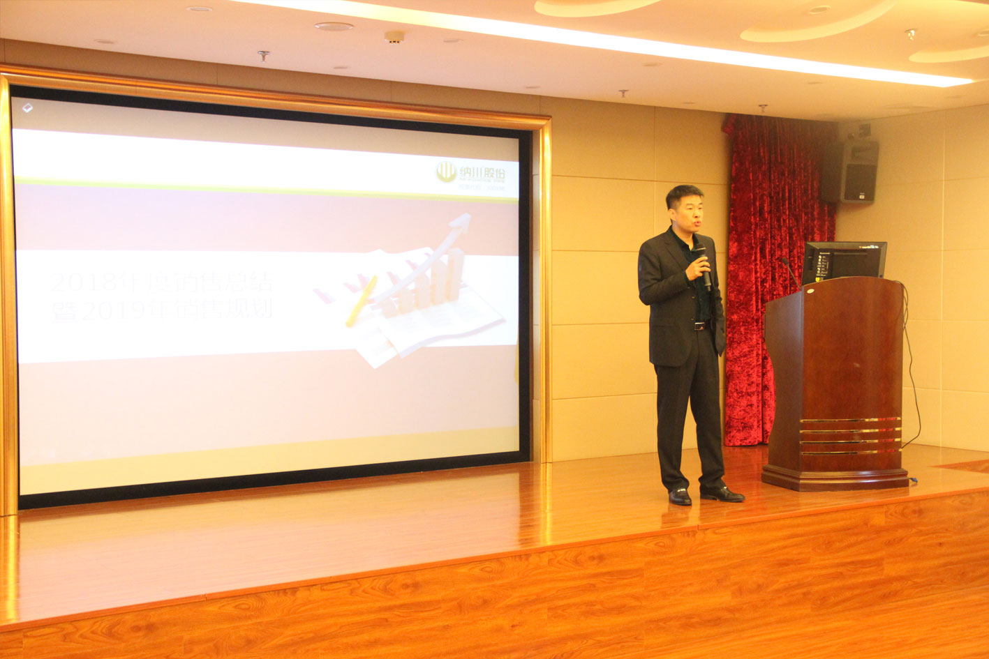 納川管業(yè)總經(jīng)理林藝輝從2018年銷售情況、未來趨勢(shì)、業(yè)務(wù)要求三個(gè)方面作了講解。并對(duì)全體銷售人員的辛勤付出及全力支持表達(dá)了由衷感謝,對(duì)未來工作發(fā)展中心和方向做出要求。