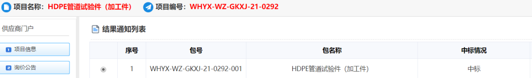 近日,中國核工業集團有限公司電子采購平臺顯示,納川股份子公司上海納川核能新材料技術有限公司中標中核武漢核電運行技術股份有限公司的核電用HDPE管道試驗件(加工件)項目。